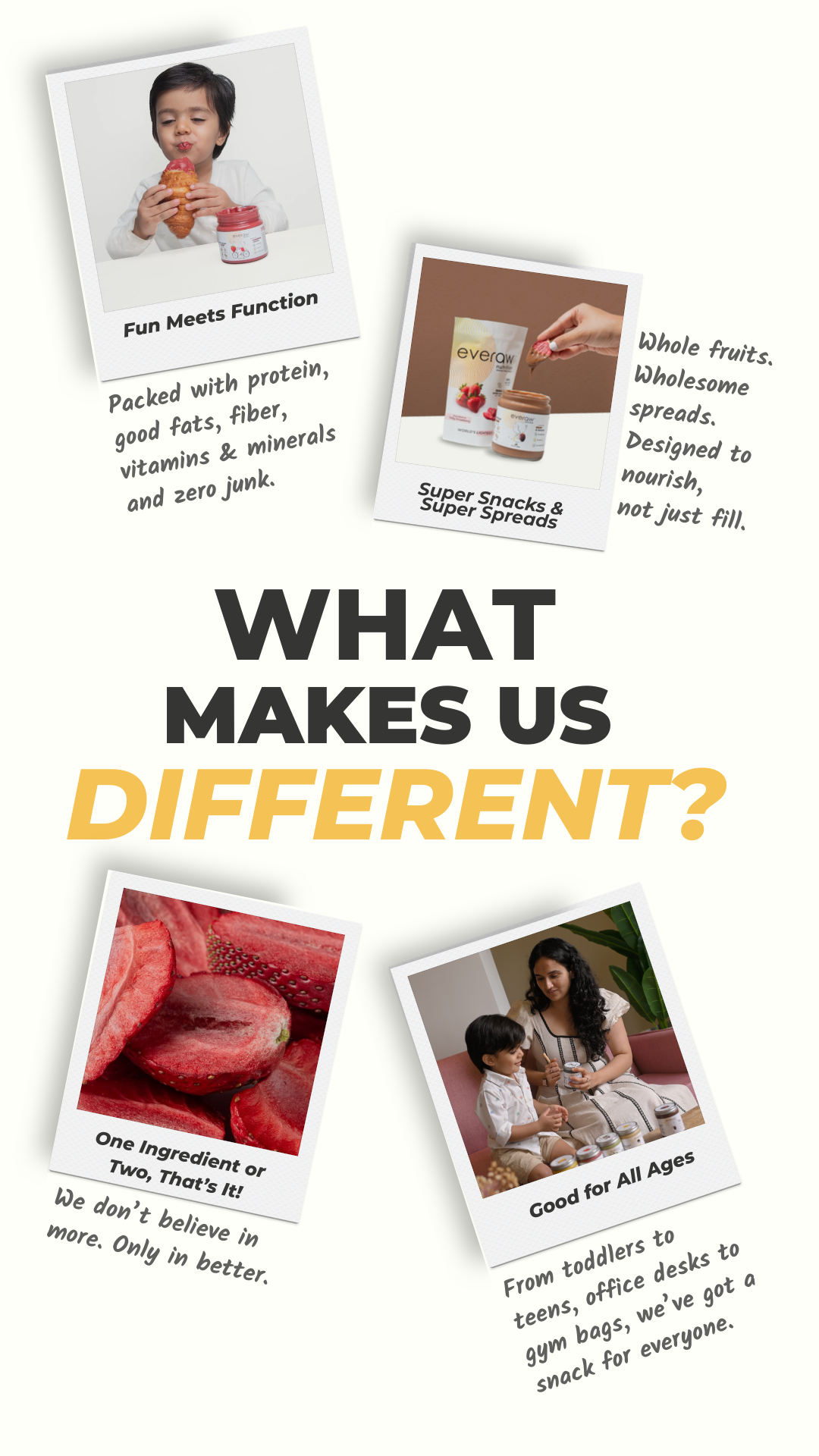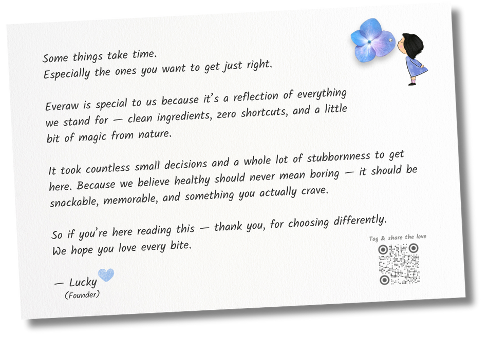 For parents packing tiffins, adults trying to eat clean, snackers with sweet cravings, and anyone who wants real food made easy. Whether you’re 5 or 55, Everaw fits in.