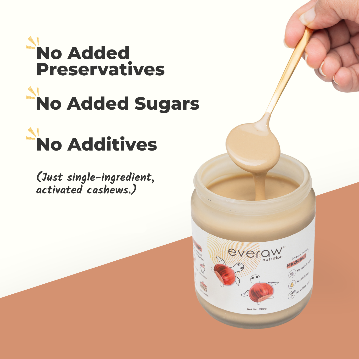 They’re the purest version of nut butters. Just one ingredient per jar (nuts), processed thoughtfully (activated/sprouted/roasted) so you get real taste, real texture, and real nutrition without any additives.